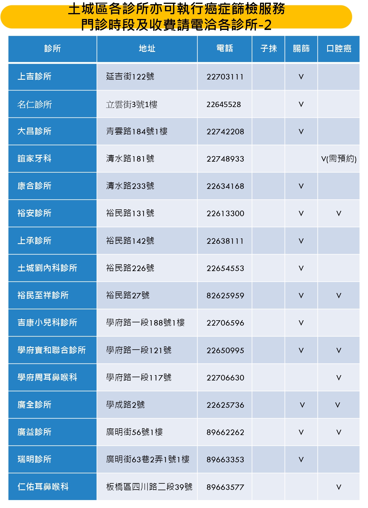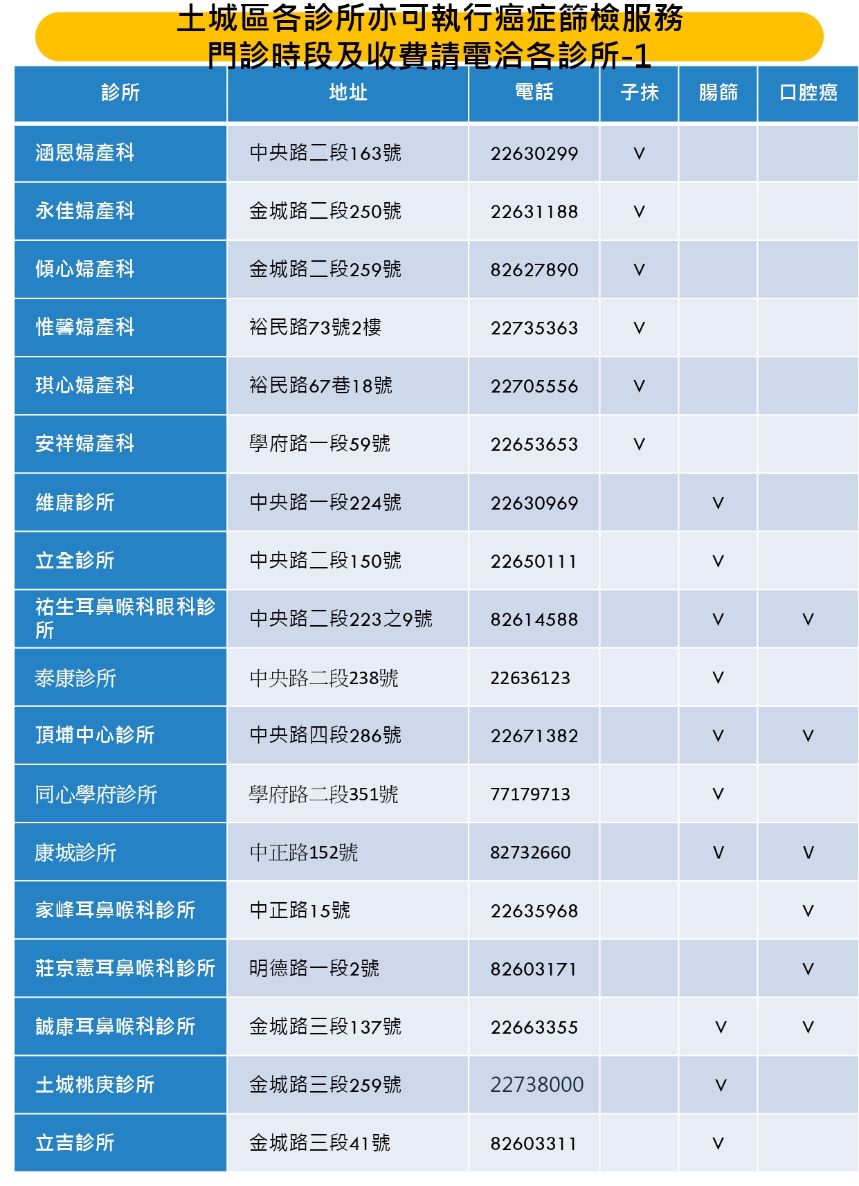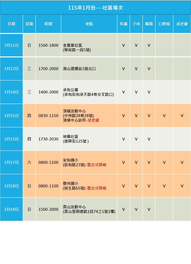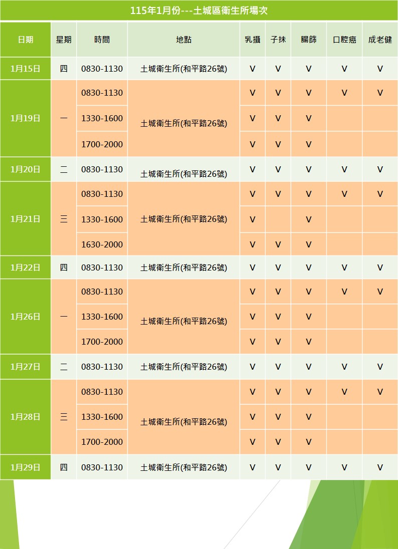 115年度1月土城區免費抽血健康檢查與癌症篩檢活動相關資訊
